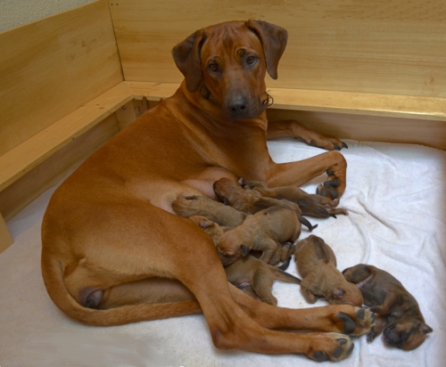 Unser C-Wurf wurde von Aireen am 6.Oktober 2013 geboren. Hündin und acht Welpen sind wohlauf.